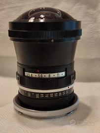 Vintage Obiettivo Kenko fish-eye 180° in confezione originale, comprendente contenitore in pelle, copriobiettivo e istruzioni. Ottime condizioni.