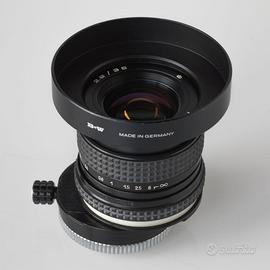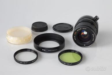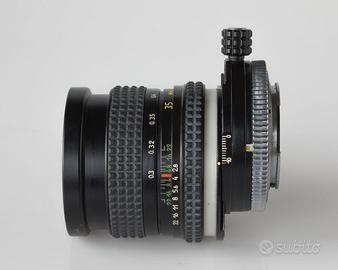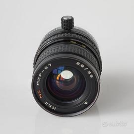 Obiettivo Arsenal-Kiev mod. Arsat 35mm f2,8 PCS H decentrabile (per riprese architettoniche), baionetta Nikon F (analogica o digitale), made in Ukraine, raro, con le scritte in cirillico; usato, ma in ottimo stato sia estetico che funzionale (normali segni di uso sulla baionetta, che non pregiudicano in alcun modo il funzionamento). In vendita con tutta la sua dotazione originale: tappi anteriore e posteriore, filtro UV e filtro giallo-verde (per ripresa BN) entrambi da 62mm e scatoletta che contiene i due filtri. in aggiunta paraluce metallico grandangolare (che non vignetta anche decentrando) marca B+W, made in Germany (solo il paraluce, nuovo, oggi costa 55 euro). Con anello di raccordo (acquistabile a parte) può essere montato su tutti i corpi analogici o digitali Canon con baionetta EF.