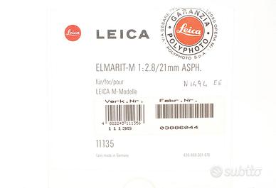 Obiettivo leica elmarit 21/2.8 asferico in ottime condizioni con imballo tappi e paraluce. Per qualsiasi informazione non esitate a contattarci in negozio Acquisto e permute con usato Le foto dell'oggetto sono originali Il materiale viene revisionato e testato prima della vendita Per problemi riguardanti l'ordine ricevuto contattateci sara' risolto in breve tempo Rif.N1494EE