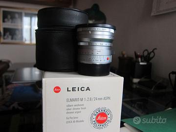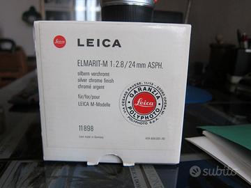 LEICA OBIETTIVO ELMARIT-M Silver chrome finish 1:2.8 /24 mm ASPH Matricola 11898 Scatola originale Custodia in pelle Paraluce 12592