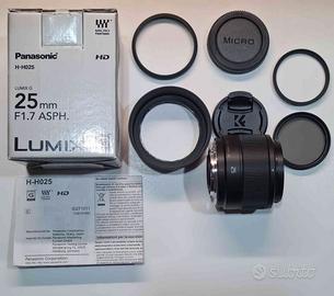 Obiettivo Lumix G 25 mm ASPH. f/1.7 e 2 filtri