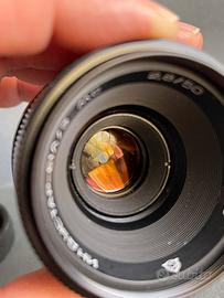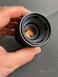 Industar-61A/3-MC 50mm 2.8 Macro Lens M42 Mount Russian Vintage URSS CCCP Sovietico Leggendario obiettivo Vintage macro Industar 50 mm f 2,8 nella più recente versione MC con trattamento antiriflesso multiplo delle lenti. Un obiettivo che mette a fuoco a meno di 30cm. Condizioni eccellenti, minimi segni di uso, direi quasi assenti. Le ghiere funzionano perfettamente, sono fluide e scorrevoli, le lenti sono perfette, pulitissime ,senza segni senza muffe, senza aloni, solo pochissimo normale microscopico pulviscolo interno che è assolutamente ininfluente alla resa. Da segnalare come in tutti questi obiettivi, la presenza di un po' di olio sulle lamelle del diaframma, anche questo è irrilevante al funzionamento perché parliamo di un diaframma non automatico, ma con movimento meccanico continuo, senza scatti, quindi l'olio mantiene la fluidità del movimento e previene l'ossidazione. È completo di tappi. Aggiungo in omaggio un filtro Marumi 1A ottimo per protezione e un pratico astuccio morbido. Tutto rigorosamente vintage e in ottime condizioni.
