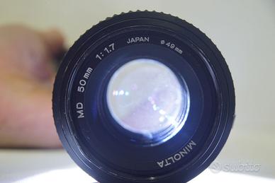 Vendo questo Minolta MD 50mm f/1.7, un obiettivo standard famosissimo per la sua incredibile nitidezza e per le dimensioni davvero compatte. È una delle lenti più riuscite di casa Minolta, apprezzata per la resa dei colori e per la capacità di staccare bene il soggetto dallo sfondo nonostante sia un'ottica molto leggera e maneggevole.