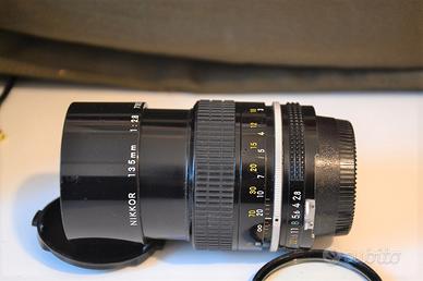 Obiettivo Nikkor 135 mm. Focalità: 1:2,8 Con modifica AI per adattarlo alla Nikkormat FT3 completo di filtro Skylight e tappo di chiusura Senza scatola