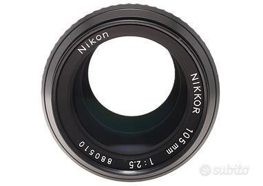 Obiettivo nikon 105/2.5 ai come nuovo senza muffe o graffi completo di tappi. Per qualsiasi informazione non esitate a contattarci in negozio Acquisto e permute con usato Le foto dell'oggetto sono originali Il materiale viene revisionato e testato prima della vendita Per problemi riguardanti l'ordine ricevuto contattateci sara' risolto in breve tempo Rif.F2605 BO