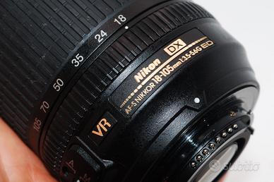 bellissimo obbiettivo per macchine fotografiche fotocamere reflex Nikon aps-c versione zoom tuttofare stabilizzato di qualità da 18mm a 105mm