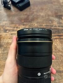 vendo obiettivo nikon 24/70 mm 2.8, usato poche volte ed in ottime condizioni. Non presenta graffi/polvere/muffe. Inclusi: - filtro Nikon NC 77 mm - paraluce originale Nikon HB-40 - tappo anteriore