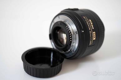 Nikkor lens, AF-S DX NIKKOR 35 MM F/1.8 G. Obiettivo in ottimo stato per APS-C, perfettamente funzionante, usato poco. Molto luminoso, con qualche minimo segno di usura come da normale utilizzo. Acquistato nel 2019, la garanzia Nital è scaduta: non ha mai problemi. È provvisto di tutto, incluso tappi, scatola, manuale d'istruzioni e sacca, manca solo il paraluce. Vendo per passaggio a Sony. Prezzo trattabile.