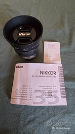 Obiettivo a focale fissa ad ampia apertura in formato DX da 35 mm (equivalente al formato da 35 mm: 52,5 mm) Apertura massima diaframma pari a f/1.8 Motore Silent Wave per un autofocus rapido e silenzioso Design ottico avanzato per un'eccezionale nitidezza ai margini e agli angoli