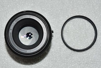 Obiettivo Nikon AF 50 mm f/1.8, in ottime condizioni estetiche e con lenti prive di difetti (graffi, opacizzazioni, etc…….). Perfetto è il suo funzionamento per quanto riguarda la sua messa a fuoco e la selezione dei diaframmi.