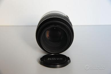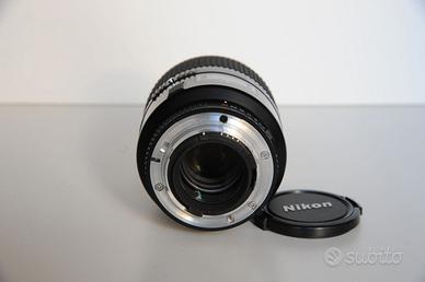 Obiettivo Nikon AF Micro Nikkor D105 f/2.8, attacco a baionetta Nikon F. Made in Japan. Messa a fuoco automatica o manuale mediante anello separato, con apposito selettore (M/A), blocco all’apertura minima. Preregolazione dell’intervallo di messa a fuoco. Messa a fuoco a rapporto di riproduzione predeterminato. Ottica fissa 105mm. Scala aperture 2.8, 4, 5.6, 8, 11, 16, 22, 32. Costruzione in 9 elementi in 8 gruppi. Specifico per macrofotografia e per ritratto. Rapporto di riproduzione 1:10 a 1:1 (grandezza naturale). Diaframma completamente automatico. Diametro filtri 52mm. Obiettivo splendido, eccellente per macrofotografia naturalistica ma anche come medio tele per fotografia generica. Già definito forse il miglior obiettivo per il 35mm mai prodotto, per corposità dei colori, nitidezza e gradevolezza d’immagine. Elevata qualità anche nell’utilizzo a distanza, superba registrazione dei particolari più minuti. Ideale come obiettivo macro. Questi sono i giudizi di quest’altra pietra miliare Nikon. Adatto per fotocamere Nikon con autofocus e non, automatiche e digitali. Perfetto, come nuovo, eccellenti condizioni, senza ammaccature o graffi e perfettamente funzionante. Il vetro è chiaro, senza graffi, senza funghi e il diaframma è pulito e senza olio. Usato solo qualche volta in ambito casalingo (ogni tanto è stato fatto funzionare a vuoto per conservare la fluidità dello scorrimento dell'ottica). In dotazione: filtro per lente frontale Nikon L1B Japan 52mm, tappo posteriore, coperchio anteriore, manuale in italiano, scatola originale, garanzia Nital (scaduta). Dimensioni 75 diametro x 104.5 estensione della flangia x 113mm lunghezza totale. Peso gr 555 circa. Euro 400. L’obiettivo è perfettamente funzionante ma privato vende “Così com’è” senza garanzia.