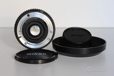 Obiettivo Nikon AF Nikkor 20mm f/2.8 D, attacco a baionetta Nikon F. Made in Japan. Messa a fuoco automatica, leva di blocco di apertura minima. Ottica fissa 20mm (ampio grandangolo). Scala aperture 2.8, 4, 5.6, 8, 11, 16, 22. Costruzione in 12 elementi in 9 gruppi con un elemento asferico. Angolo di campo 94°. Distanza min messa a fuoco di 25cm. Diaframma completamente automatico. Diametro filtri 62mm. Un altro mitico obiettivo Nikon, eccellente grandangolo piuttosto spinto ma compatto e leggero per incredibili fotografie di paesaggi e d’effetto o in luoghi stretti. Resa ottima, molto nitido fino ai bordi, eccezionale per definizione e contrasto. Adatto per fotocamere Nikon con autofocus e non, automatiche e digitali. Perfetto, come nuovo, eccellenti condizioni, senza ammaccature o graffi e perfettamente funzionante. Il vetro è chiaro, senza graffi, senza funghi e il diaframma è pulito e senza olio. Usato solo qualche volta in ambito casalingo (ogni tanto è stato fatto funzionare a vuoto per conservare la fluidità dello scorrimento dell'ottica). In dotazione: filtro per lente frontale Nikon L37c Japan 62mm, tappo posteriore, coperchio anteriore, manuale in italiano, scatola originale, garanzia Nital (scaduta). Dimensioni 69 x 42.5 x 52mm lunghezza totale. Peso gr 270 circa. Euro 300. L’obiettivo è perfettamente funzionante ma privato vende “Così com’è” senza garanzia.