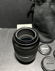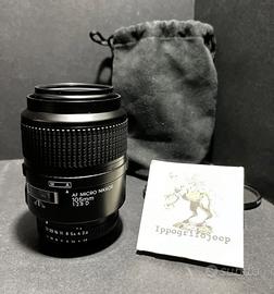 Obiettivo Nikon AFD 105 mm f 2.8 Micro Full Frame Autofocus con tappi, filtro e bag.