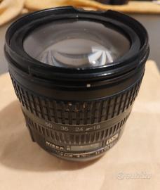 obiettivo Nikon dx asferico 18 70 funzionante con una piccola parte in plastica mancante sull'avviamento filtri e paraluce, ma ininfluente poiché come da immagine si possono agganciare sia filtri che paraluce