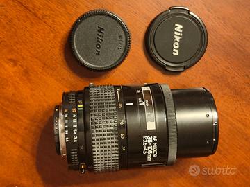 Obiettivo vintage Nikkor AF 35-105. Originale Nikon, con tappo anteriore e posteriore, autofocus, funziona benissimo. No custodia.