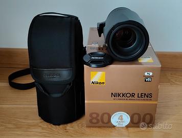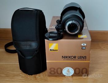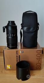 Obiettivo nikon 80-400mm f/4.5-5.6 G ED VR (NITAL), in perfette condizioni funzionali ed estetiche, usato sempre con filtro a protezione della lente, con imballi originali, sacca,