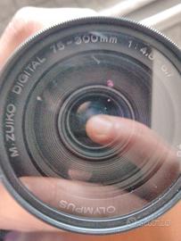 Obiettivo Olympus 75-300 mm f-4.8/6.7 Condizioni estetiche: buone Condizioni interne: perfette Perfettamente funzionante, ma riporta alcuni segni esterni di usura. Il segno più importante è sicuramente quello sulla lente che si vede in foto. In ogni caso questo è totalmente invisibile durante l'utilizzo e non inficia minimamente la visione e le foto. Solo ritiro a mano (Bologna e dintorni, ma possiamo organizzarci, sono spesso fuori regione).