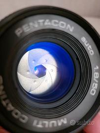 obiettivo a vite 42x1 ottimo da usare anche con le moderne digitali con apposito adattatore.La fotocamera si intende in omaggio in quanto ha l'otturatore guasto. Ottima da arredo.