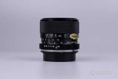 Obiettivo vintage con attacco baionetta Pentax PK a doppia focale Soligor Bifocal 28mm f3.5 + 35mm f3.8.