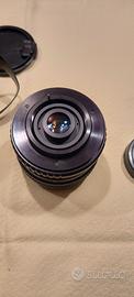 Obiettivo per fotocamera vintage SANKOR 1:2.8 con custodia in pelle CILINDRICA originale e filtro Toshiba SL-1A. senza garanzia di funzionamento perfetto