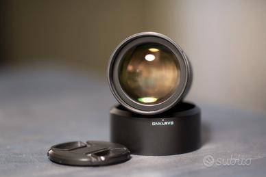 Obiettivo Samyang 85 mm f1.4 con attacco Sony A, adattabile a mirrorless Sony attacco E tramite adattatore.