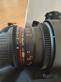 Obiettivo Samyang Fish-eye 12mm t/3.1 per Sony A progettato specificamente per fotocamere Sony A. Con una lunghezza focale fissa di 1,2 cm e un'apertura massima di f/22, questo obiettivo offre immagini straordinarie e una regolazione della messa a fuoco manuale per una creatività senza limiti. Con un peso di soli 520g, è ideale per i cineasti che cercano un'ottica leggera e versatile. Non perdere l'opportunità di catturare ogni dettaglio con questo obiettivo di alta qualità. Incluso nel prezzo: Garanzia 5 anni Italia Fowa •Tempi di assistenza più rapidi •Prodotti e Ricambi Ufficiali •Centri di assistenza Ufficiali Italia Prestazioni eccezionali per la cinematografia con l'obiettivo full frame Samyang 12mm fisheye Messa a fuoco manuale Fisheye Lens Cine Samyang 12 millimetri T3.1 VDSLR ED AS NCS Fish-eye è un obiettivo cine fisheye VDSLR progettato per un sensore full frame. Caratteristiche Samyang 12 millimetri T3.1 VDSLR ED AS NCS Fish-eye permette la realizzazione di video con segni numerici T.L'anello di messa a fuoco è installato per il sistema di messa a fuoco.È possibile modificare l'apertura gradualmente e senza intoppi con l'apertura delle corone dentate disaccoppiate.Inoltre, la scala di distanza e i numeri T sono segnati su entrambi i lati della lente per comodità. Caratteristiche ottiche Samyang 12 millimetri T3.1 VDSLR ED AS NCS Fish-eye è un obiettivo a fuoco manuale con un numero T basso.Si può controllare l'obiettivo con precisione nelle riprese in varie esposizioni ambientali comprese situazioni relativamente scure o troppo luminose.Questo obiettivo è costituito di 12 lenti in 8 gruppi comprese le 2 lenti asferiche di vetro (ASP), e 3 extra lenti a bassa dispersione (ED) per offrire alta risoluzione.Anche il Nano Coating System (NCS) di Samyang Optics è usato per ottimizzare la penetrazione della luce e ridurre al minimo l'effetto flare e quello fantasma.