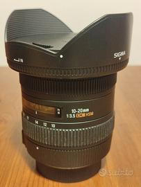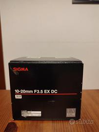 Vendo Obiettivo SIGMA 10-20mm F3.5 EX DC per Nikon . Completo di scatola originale, istruzioni in italiano, custodia e tappo. Acquistato nuovo e utilizzato pochissimo. La lente non presenta graffi. Vento per passaggio a macchina full frame.