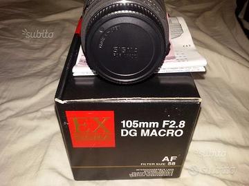 obiettivo ad altissime prestazioni Sigma 105mm DG MACRO EX f2.8 nikon pari al nuovo usato veramente poco sempre con filtro che regalo tenuto in maniera maniacale, chi lo conosce sa di cosa parlo