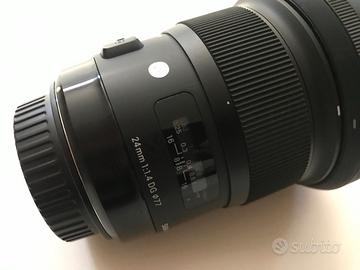 Obiettivo Sigma 24mm f/1.4 DG ART (Canon) usato solo in studio, perfetto, fornito nella sua confezione originale, come nuovo.