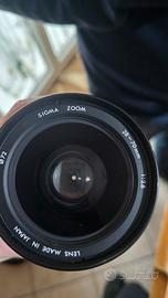 Vendo obiettivo zoom professionale Sigma 28-70mm con apertura costante f/2.8 su tutta l'escursione focale. L'ottica è dotata di attacco Minolta AF (compatibile con serie Dynax e Sony Alpha A-mount). Si tratta di un obiettivo molto luminoso, ideale per ritrattistica e fotografia in condizioni di scarsa luce, garantendo un ottimo sfocato (bokeh).