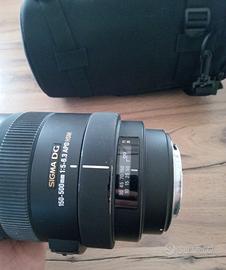 Obiettivo sigma apo 150-500 mm f 5/6:3 apo dg os, attacco Canon, con custodia e parasole, pari al nuovo 500 €.