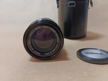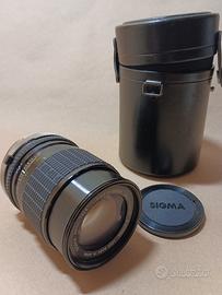 Obiettivo mini-tele 135mm f 3.5 di marca Sigma attacco per Canon. Messa a fuoco manuale. Buone condizioni, lenti pulite e senza graffi, conservato con cura. Completo di astuccio.