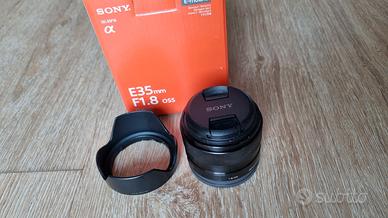 Obiettivo Sony E-mount con focale fissa da 35mm e apertura f/1.8.