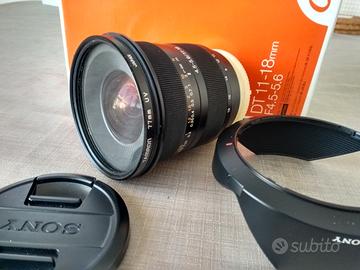 Vendo obiettivo grandangolo Sony SAL DT 11-18/4,5-5,6, condizioni pari nuovo, completo di tutto per corpi Sony alpha mount A. Prezzo meno della metà del nuovo.