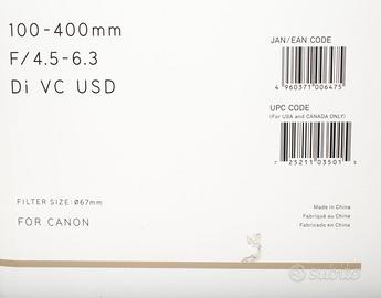 Obiettivo tamron 100-400/4.5-6.3 stabilizzato per canon eos come nuovo con imballo.