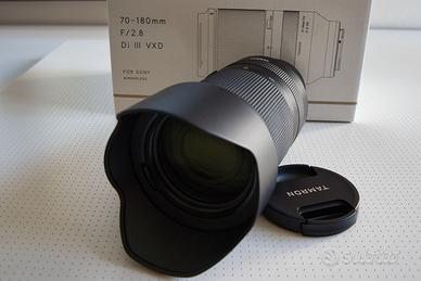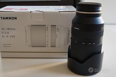 Obiettivo Tamron 70-180mm f/2.8 Di III VXD per sony FE fullframe, teleobiettivo luminoso dalle dimensioni e peso ridotti, progettato per le moderne mirrorless, acquistato in negozio italiano con garanzia Italia fino al 30/11/2025.