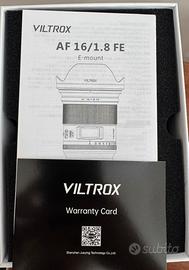 Vendo obiettivo grandangolare VILTROX 16mm F1.8 FE Sony E Mount Autofocus Lens Full Frame per fotocamere Sony E Mount Lunghezza focale fissa Auto Focus Grande apertura per Sony.