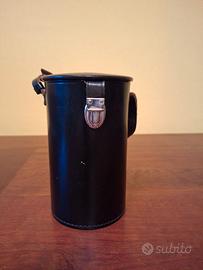 obiettivo vintage Meyer-Optik Gorlitz Orestor 135mm f/2.8 prodotto nella Gemania Est (G.D.R.). Presenta la classica estetica a righe bianche e nere tipica degli anni '60 nota come "zebra". Può essere adattato alle fotocamere moderne tramite anelli adattatori.