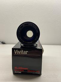 Vendo per inutilizzo obiettivo Vivitar 70-210mm f/4.5-5.6 Macro 1:4X per Olympus OM. Compreso di un anello adattatore da OM a 4/3 per montare sulle fotocamere digitali. l'obiettivo funziona con esposizione e messa fuoco manuale.