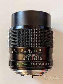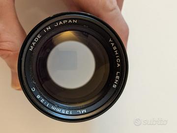 obiettivo YASHICA 135mm 2.8 attacco contax, made in japan. In buono stato, con qualche segno di usura sul metallo. Obiettivo interessante, abbastanza morbido, ghiera del fuoco lunga e precisa, presente ghiera del diaframma.