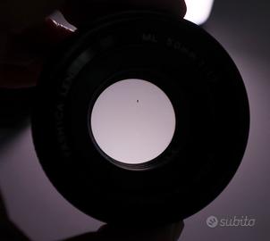 Vendo obiettivo Yashica ML 50mm f. 1,7 attacco C/Y in ottime condizioni estetiche. Diaframma scorrevole e pulito. All'interno è presente una macchia di pulviscolo di cui mi sono accorto facendo le foto per la vendita ma non ho mai notato usandolo. Completo di tappi anteriore e posteriore
