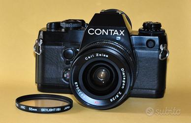 Vendo obiettivo ZEISS Distagon 2,8/28mm attacco Contax+Contax 139Q+Switch Cable Contax originale m 1+Filtro Hoya HMC UV Skylight 1B 55 mm +attacco sistema SCA 380 (Contax) per flash TTL. Obiettivo adatto a CANON reflex digitali Con anello senza lenti)
