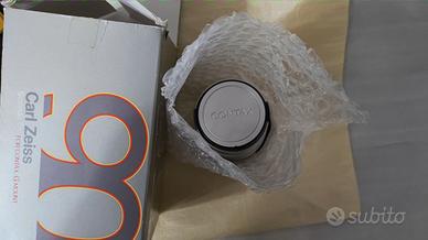 Obiettivo Carl Zeiss Sonnar 90mm f/2.8 per Contax, rivestimento T* ; estetica ottima, lenti cristalline, con scatola originale e tappi. Obiettivo di qualità eccelsa come da tradizione Zeiss