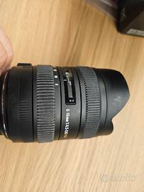 Obiettivo zoom grandangolare Sigma 8-16mm f/4.5-5.6 dc hsm per Canon EF APS-C Vendo per passaggio a pieno formato. Obiettivo bellissimo, perfetto per paesaggi, colori vividi e pochissima deformazione, quasi impercettibile.