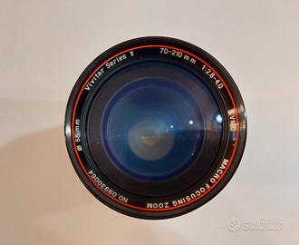 Obiettivo zoom Vivitar 70/210 serie uno, usato, attacco fisso Contax/Yashica, con custodia originale. Vendo a 30€.