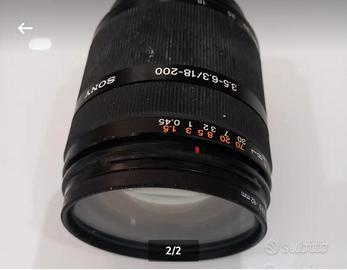 Un obiettivo zoomSony DT 18-200mm f/3.5-6.3 (SAL18200). È un obiettivo superzoom progettato per fotocamere Sony con sensore APS-C ATTACCO A. La messa a fuoco avviene tramite il motore AF della reflex. Presenta una distanza minima di messa a fuoco di 0,45 m. Pesa circa 400 g.