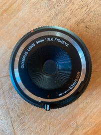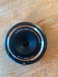 Obiettivo Zuiko 9 mm per micro 4/3 f:8 fisso con messa a fuoco a tre posizioni.