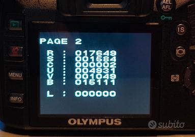 Vendo corpo macchina Olympus Digital E-510 (kit) con ottica Zuiko Digital ED 14-42 mm. F 3.5-5.6 completa di imballo originale ed accessori, seconda batteria (non originale), telecomando (non originale), secondo schermo di messa a fuoco con corona di microprismi ed immagine spezzata, 17.649 scatti, tutto materiale in condizioni perfette a 150 euro