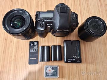 olympus E3 zuiko 11-22 f2.8 - 3.5 zuiko 40 -150 f4 -5,6 3 batterie i carica batteria 2 schede C F. 1 scatto remoto.