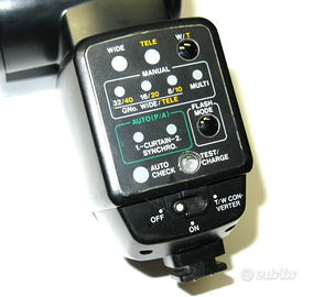 Flash Olympus Electronic Flash G40 per serie IS 1000, 2000,3000 FUNZIONANTE COMPRESO L'ASTUCCIO ORIGINALE DI PROTEZIONE BATTERIE NON COMPRESE